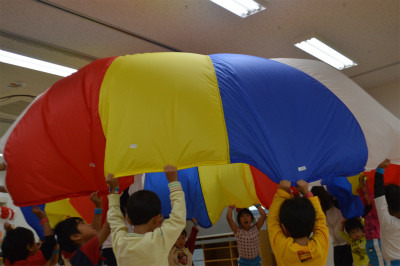 今日は幼稚部さんといちご組さんの一日です(*^^)v 幼稚部さんは運動会のバルーンの練習を頑張りました! 沢山ある技の中から今日は2つをご紹介(^_^)/ 一つ目は「ふうせん」という技です。 ふんわりとした…