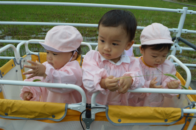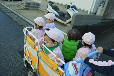 今日はもも組さんの様子です(^O^) カートに乗って行ってきます!! あっ!と指を指し子どもたちが見つけたものは… みかんの木です!! 子どもたちは「あっあっ!!」…