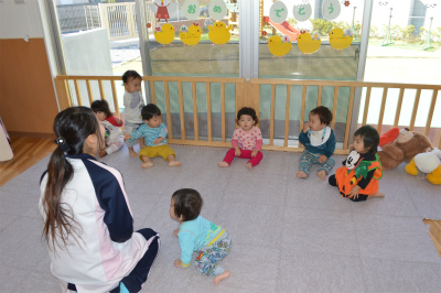 今日は保育部のお友達の様子です。 発表会に向けて合同で見せ合いっこをしました(*^_^*)♪ まずはもも組さんの発表です。 音楽がかかり、みんな上手にハイハイをしていますね! …