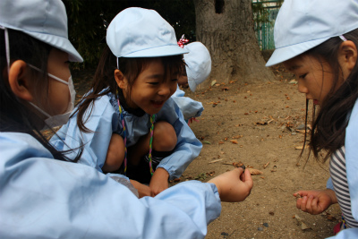 園庭に何がいるのかと思ったら、季節はずれのカエルを発見!! 今度はなにがいるかなぁと探すお友達。 おしりにはさみのついた小さな虫を発見!! 「獏たちは芝生をゲットしたよ」と嬉しそうです。 &n…