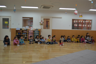 今日はにじいろ保育園のクリスマス会でした。 各クラス自分たちで作った素敵な三角帽子を被って参加しました。 先生たちのハンドベルの演奏「きよしこの夜」 みんなうっとりして聞いていました。 ほし組…