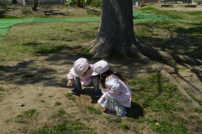 保育部のお友達は土の穴の中から出てくるアリさんに夢中です!!
