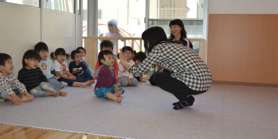 ゆりこ先生がくると、元気よく「ハロー」とあいさつを
