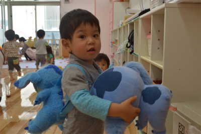 ぬいぐるみをおんぶに抱っこしてお出かけ☆