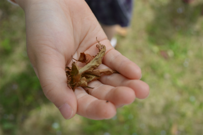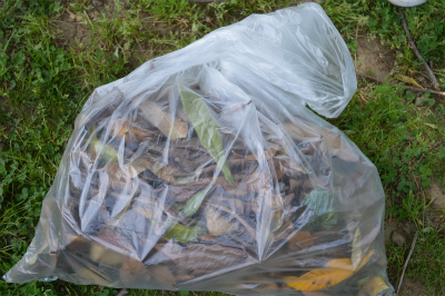 さあ!落ち葉拾いの開始です!!みんな必死に見つけてきました。