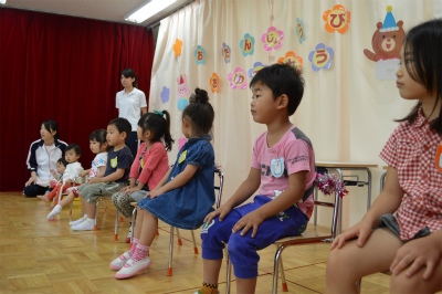 5月生まれのお友達も、先生に名前を呼ばれて、舞台に上がります。