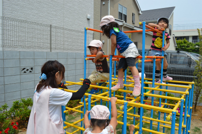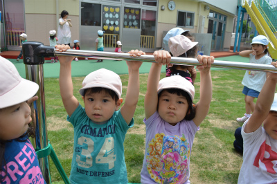園庭に出ると、鉄棒やジャングルジムへ一直線に向かい