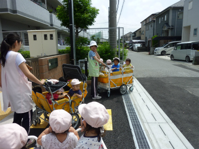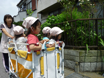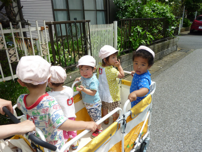 ダンスを可愛らしくカートの中で踊っていました!(^^)!散歩でいろんな発見ができました。