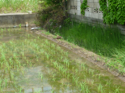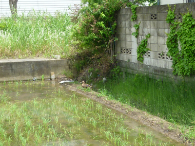 田んぼの中もよ~く見ると“おたまじゃくし”と“めだか”も見つけました。皆はそれを発見して、いちご組さんでいつも踊ってる“おたまじゃくし”の