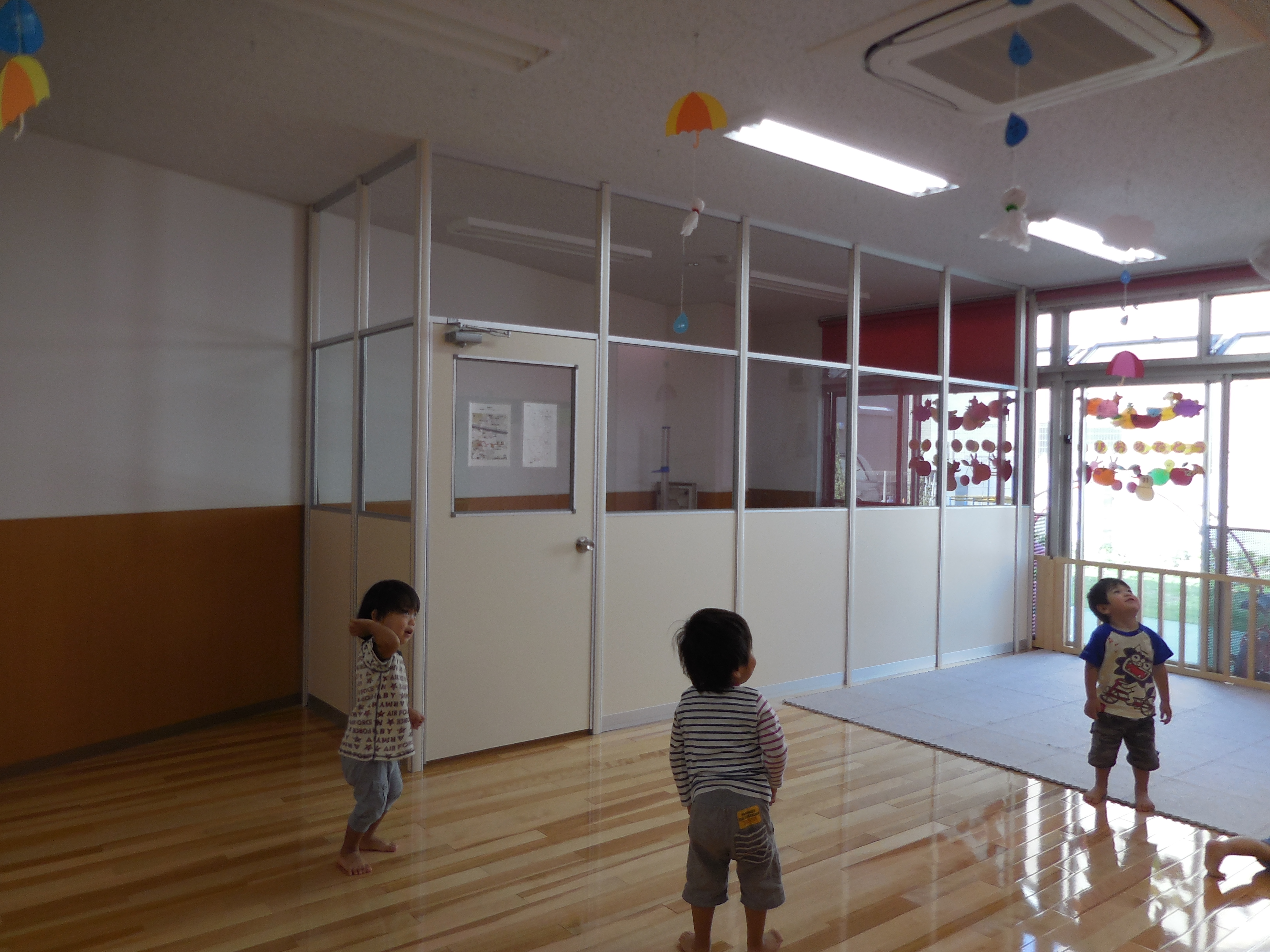 てるてる坊主やかえるが、めろん組のお友達を見守ってくれているようですね(^O^)