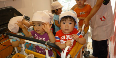 今日は先生と手を繋ぎ、初めてお散歩に行ったお友達が