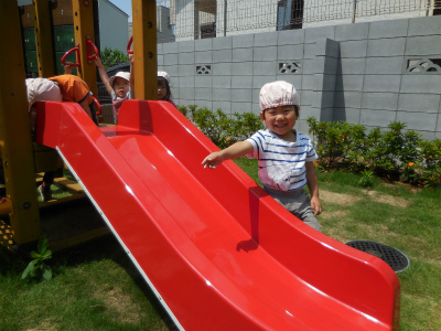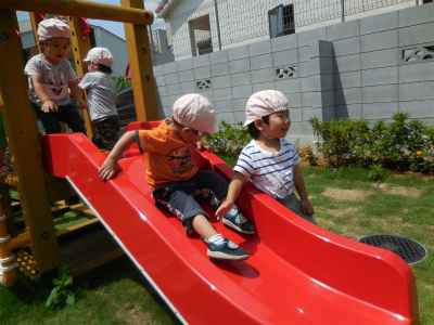 6月202014にじいろブログ今日のめろん組さんです! 園庭に出てお友達と楽しく遊びました(*^。^*) 遊具の上に登ったら「おーい!!」と叫んでいました すべり台には、なんと踏切が・・・ 「カンカンカン!」と踏切が閉まり お友達が来ると踏切が空いていました(#^.^#) 園庭で遊んでいると遠くの方からもも組のみんなが手を振っていて めろん組も一所懸命に手を振りかえしていました!(^^)! Post navigationPreviousPrevious post:6月18日(水)NextNext post:6月20日