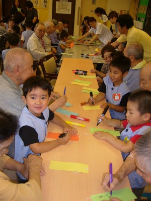 おじいちゃん、おばあちゃんと一緒に短冊に願い事を書きました。
