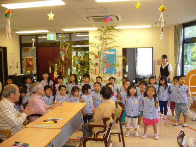 今日のお礼に「ふるさと」と「たなばたさま」を歌いました☆