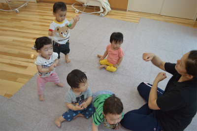帰りの会では先生と一緒に「♪いーとーまきまき」を歌いました!!