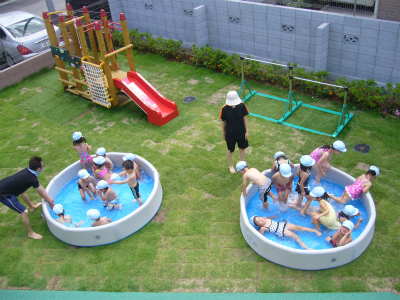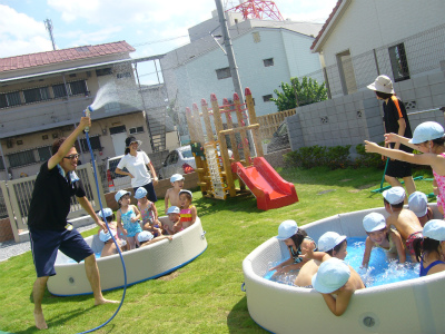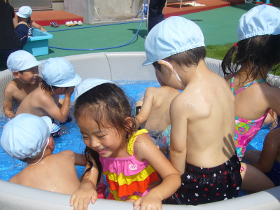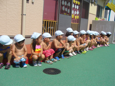 そして午後にはみんなが待ちにまったプール遊びです。入れると聞いてみんなは大喜び(*^_^*)