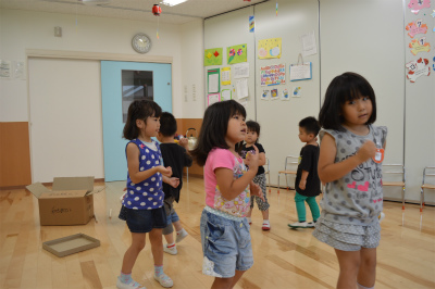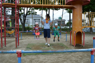 7月192014にじいろブログ今日はもも組さんからたいよう組さんまで全員で弁天公園へお散歩に行きました。 弁天公園には大きな遊具が沢山あります。 人気の遊具は大きな滑り台♪ 一人ひとり順番に並んで滑ることが出来ました。 二人仲良くブランコで遊ぶことが出来ましたね(*^_^*) 保育園に戻り、幼稚部さんは盆踊りの練習!(^^)! 夏祭りが楽しみですね☆ Post navigationPreviousPrevious post:7月18日(金)NextNext post:7月22日