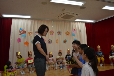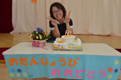 そして・・ここでサプライズが・・。園長先生も7月誕生日のために、素敵なお花のプレゼントが(#^.^#)