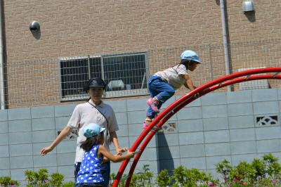 今日は土曜日のため合同保育でした(*^_^*) 天気もとてもよく暖かかったので今日は園庭に出て遊びました! 太鼓橋を上手に渡っていますね!とっても真剣なお顔がかっこいいです☆ 次は、ジャングルジムで遊ぶ幼稚…