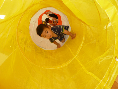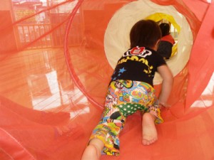 トンネル遊びでは、「おんまはみんな♪」の歌にあわせて楽しみました(^v^)