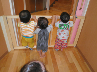 保育園に帰ってきていつも通りおもちゃで遊んでたらなぜだか廊下を気にする子どもたち。