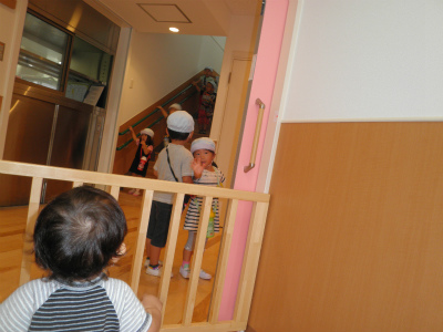 なんだろ~と思い見てみると幼稚部のお兄さんお姉さんが上から降りてきたところでした♪
