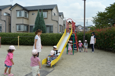 すべり台や鉄棒、ブランコなどで楽しみいちご組さんとも一緒に遊んでいます