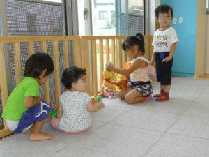 大きいお姉さんが「ぬいぐるみ屋さんとボール屋さんで~す♪」と声をかけると