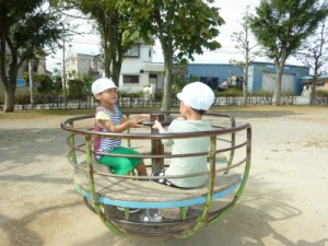 幼稚部さんは楽しそうにコーヒーカップに乗って遊んでいました。