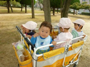 もも組さんはカートに乗って公園内を散策しました。