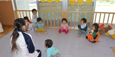 柵ぺったんをした後は朝の会をし絵本を見ます!