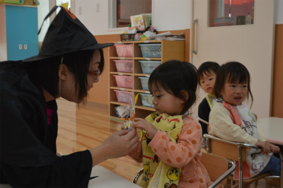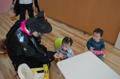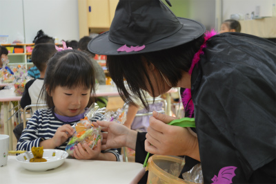 幼稚部さんは「トリックオアトリート!」と言ってお菓子を受け取り