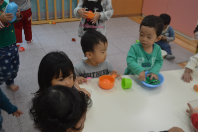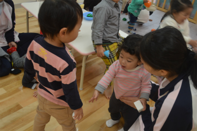 保育部では、めろん組のお部屋にもも組さんが遊びに来ていました!