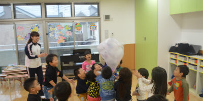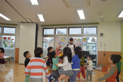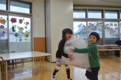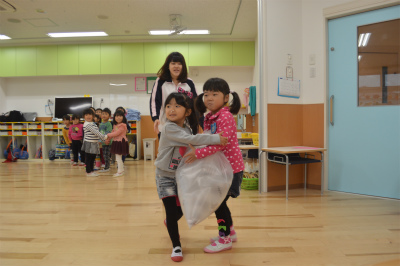 今日は雨だったので幼稚部のお友達は室内でゲームをしました。