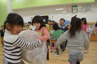 床に落とさないように友達と協力して上にあげたり(#^.^#)