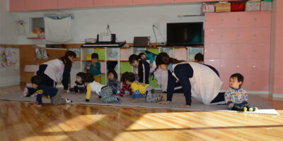 音楽がかかり、みんな上手にハイハイをしていますね!