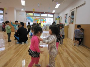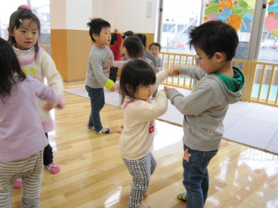 二人組になり「しあわせなら手をたたこう」を歌いました。