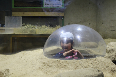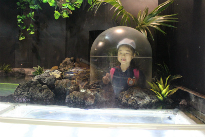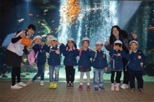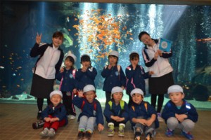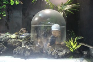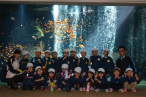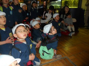 たいよう組は二階の虫コーナーに行き、珍しいタランチュラなど間近で見たり、一階の下をくぐれる水槽に行き、おおきなヘビを間近で見たりして興奮していました♪