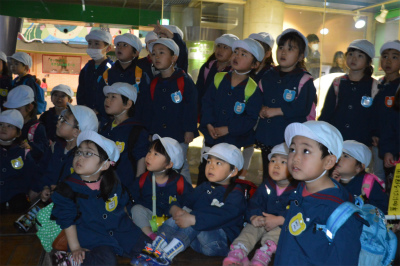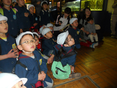初めて見る光景に目が釘付けになっていました☆飼育員さんから「ウツボは少しの食事だけで百何年も生きることができるんだよ!」と言われ、みんな驚いていました!!