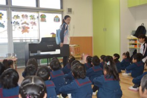 まずは朝はいつもの通りに朝の会をします。ですが今日はいつも以上に真剣に先生のお話をきいています!