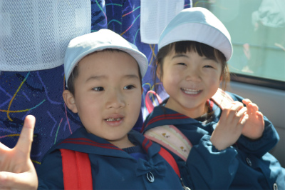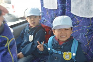 バスの中ではほし組、そら組、たいよう組のどのお友達もニコニコで乗っていました♪