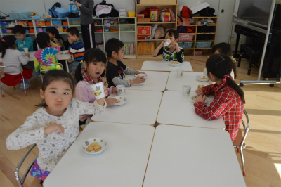 保育園に帰ると今日は給食の先生たちがおやつに手作りクッキーを作ってくれていました!!