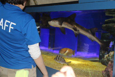 生物園についてからはまず、サメ・ウツボの餌やりを見学しにいきました!