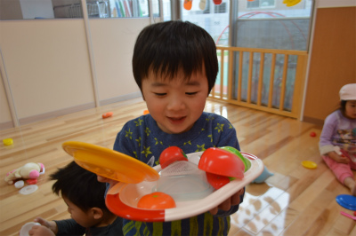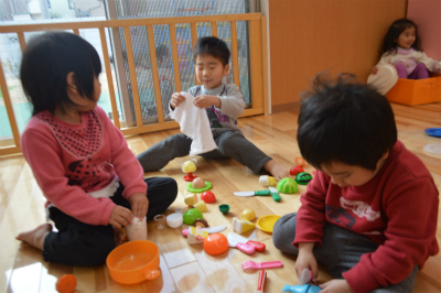 午後はお部屋でおままごとや洗濯バサミを使った遊びをしました(*^_^*)