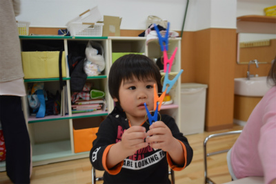 洗濯バサミを繋げて遊んでいる姿も見られました!(^^)!