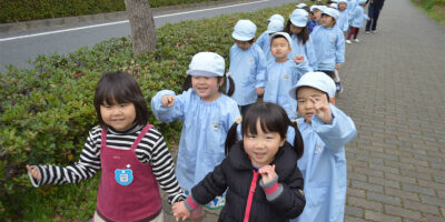 今日はたいよう組と一緒に保育園の周りを散歩しました。