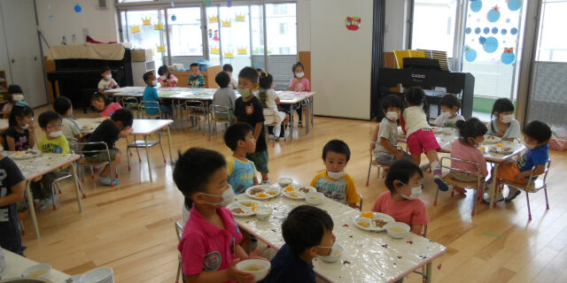 今日は幼稚部の給食の様子を覗いてみました(*^_^*)