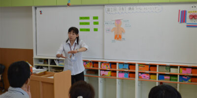 草加にじいろ保育園は完全自園調理給食、園庭開放と子育て講座で地域交流、看護師常駐の体調不良児対応保育園です。