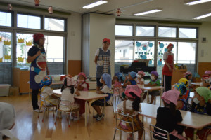 園長先生や給食の先生のお話を真剣に聞いています☆