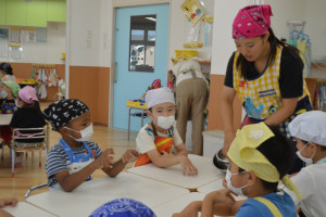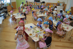 たいよう組は米を研いだり、包丁を使っ野菜を切ったりしました!